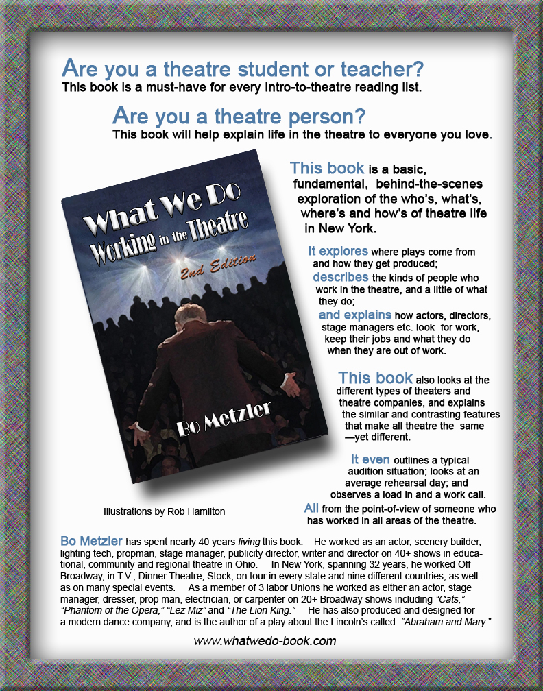 DOWNLOAD A free POSTER to hang on your theatre bulletin board HERE - - - - - - DOWNLOAD A free PDF copy of Behind the Lion's Roar (the book that HAD to be written, so the truth could be told) by Bo Metzler (unpublished) HERE |